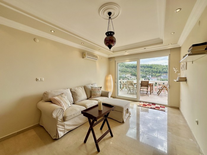 Möblierte 3+1-Wohnung mit Blick auf das Meer, die Berge und die Natur in der malerischen Gegend von Alanya – Tepe.