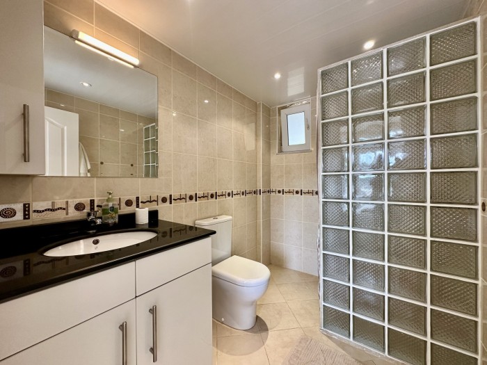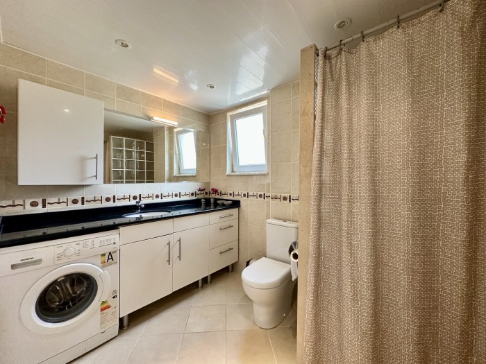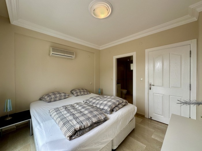 Die Wohnung wird möbliert verkauft, mit Klimaanlagen, Haushaltsgeräten, einer Einbauküche und einem ausgestatteten Badezimmer.