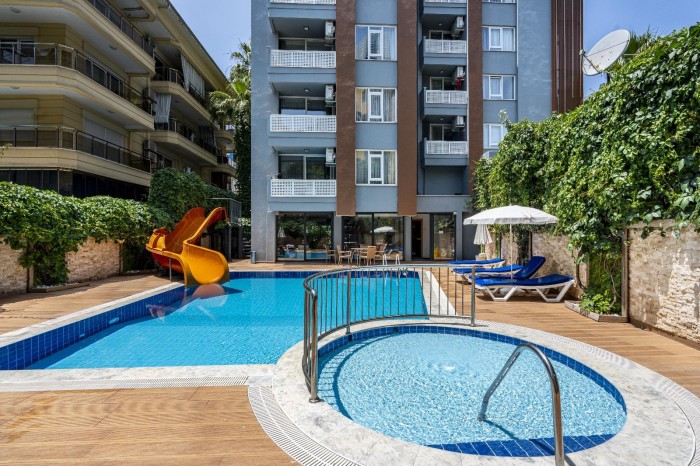 Zum Verkauf steht eine möblierte 1+1-Wohnung, 400 Meter vom Meer entfernt im Zentrum von Alanya.