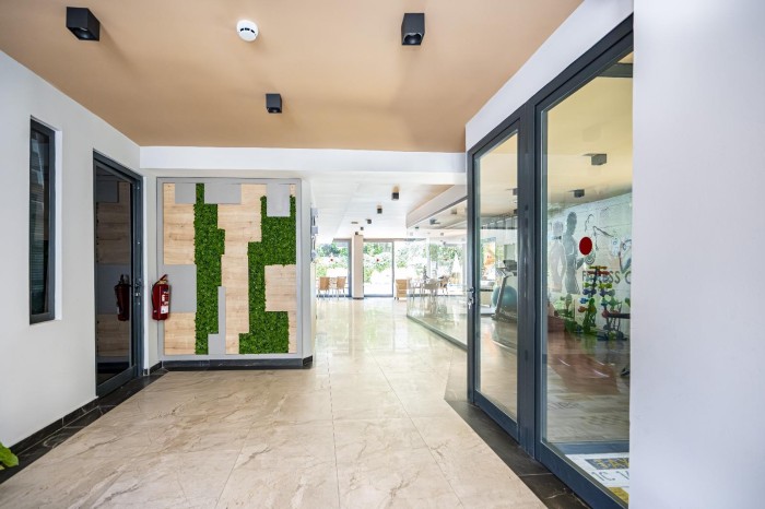Das 1+1 Apartment (55 m²) befindet sich im 6. Stock und umfasst: ein Wohnzimmer mit integrierter Küche, 1 Schlafzimmer, 1 Badezimmer und einen Balkon mit Bergblick.