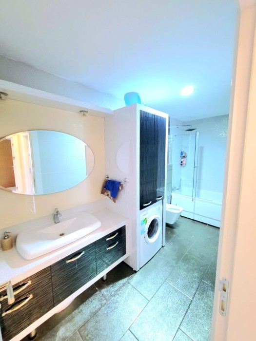 Die Wohnung ist möbliert, mit Haushaltsgeräten und Klimaanlagen ausgestattet und verfügt über eine Fußbodenheizung im Badezimmer.