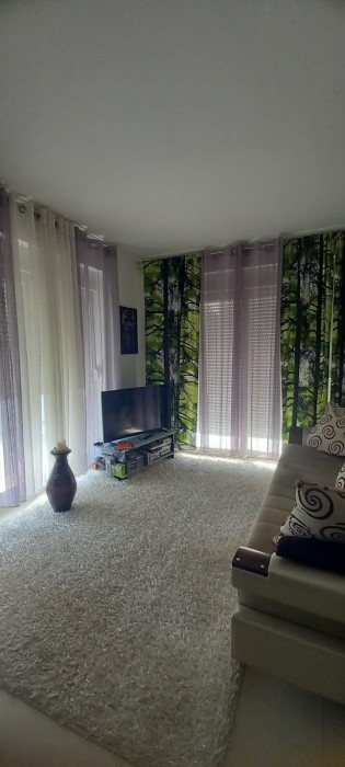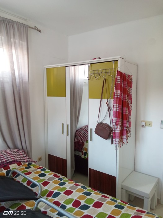 Das 1+1-Apartment (45 m²) befindet sich im 1. Obergeschoss und besteht aus: einem Wohnzimmer mit integrierter Küche, einem Schlafzimmer, einem Badezimmer und einem Balkon mit Blick auf den Pool.