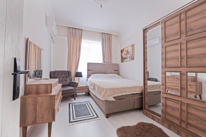 Eine möblierte 2+1-Zimmer-Wohnung in Mahmutlar, einem der beliebten Viertel von Alanya, steht zum Verkauf.