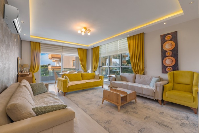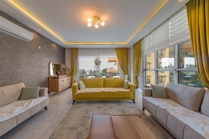 Eine große, möblierte 3+1-Zimmer-Wohnung in Mahmutlar, einem der beliebten Viertel von Alanya, steht zum Verkauf.