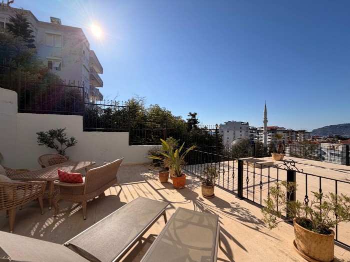 Möblierte 3+1-Zimmer-Wohnung mit privater Terrasse im Erdgeschoss in ruhiger und friedlicher Lage in Alanya - Cikcilli steht zum Verkauf.