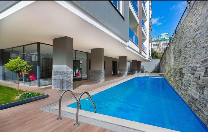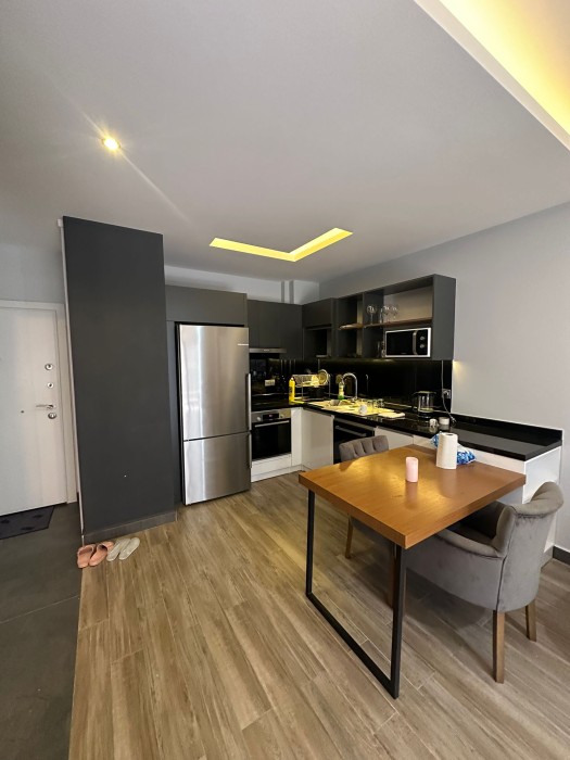 In einem Wohnkomplex im beliebten Viertel Alanya - Mahmutlar steht eine möblierte 1+1-Wohnung zum Verkauf.