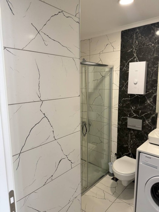 Das 1+1-Apartment (45 m²) befindet sich im 1. Obergeschoss und verfügt über folgende Aufteilung: ein Wohnzimmer mit integrierter Küche, ein Schlafzimmer, ein Badezimmer und ein Balkon.