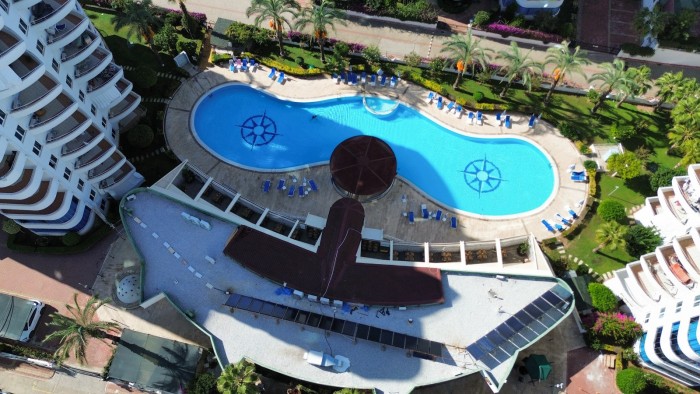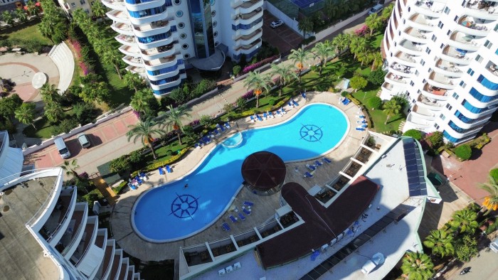 Die 2010 erbaute Anlage liegt 600 Meter vom Strand entfernt. Sie verfügt über ein großes, gepflegtes Gelände mit Außenpool, Innenpool, Hamam, Fitnesscenter, Außenparkplatz, Pavillon, Aufzug und Generator.
