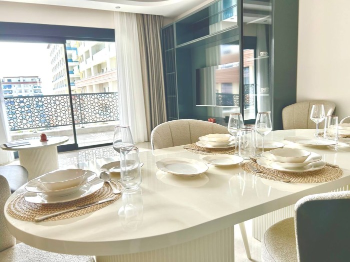 Eine neue, möblierte 2+1-Wohnung in einem Premium-Komplex in Mahmutlar, einem der beliebtesten Viertel von Alanya, steht zum Verkauf .