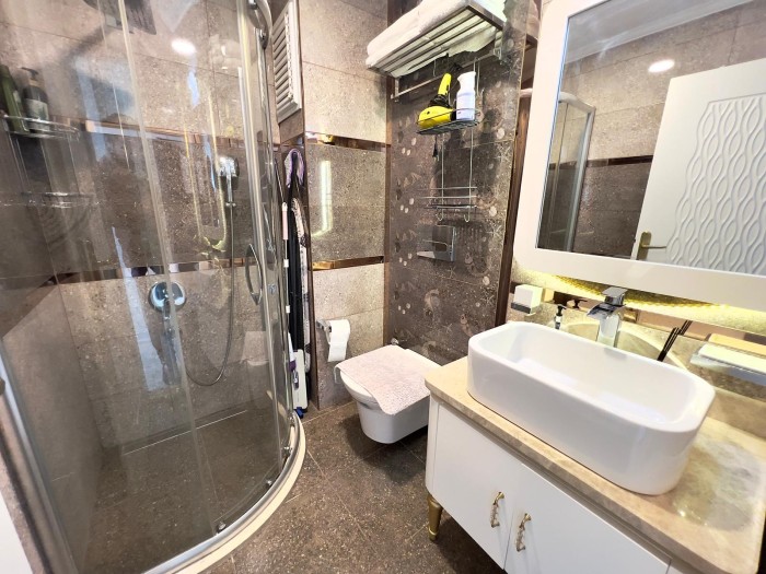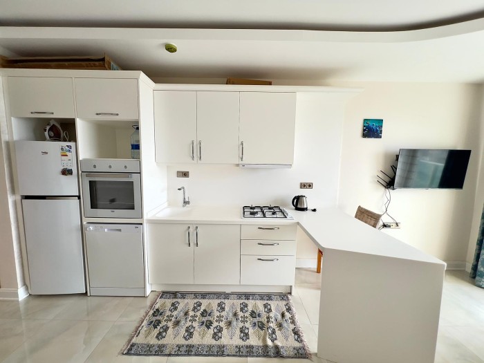 Die Wohnung befindet sich in einem 2018 erbauten Komplex, nur 200 Meter vom Meer entfernt, in fußläufiger Entfernung zu Geschäften, Cafés, Apotheken, Banken, einem Einkaufszentrum und einer Bushaltestelle.