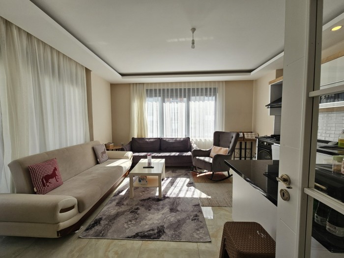 Eine möblierte 1+1-Wohnung im Stadtteil Tosmur von Alanya steht zum Verkauf .
