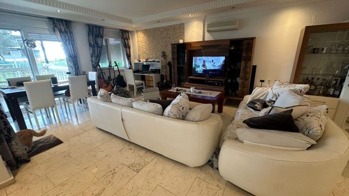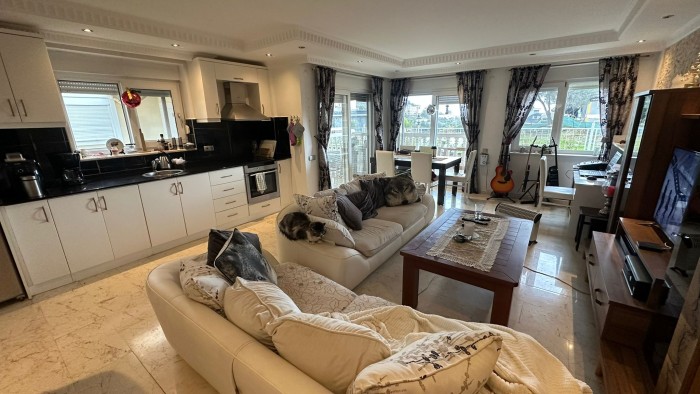 Wohnung 2+1 (110 m2) Aufteilung: Flur, Wohnzimmer mit integrierter Küche, 2 Schlafzimmer, Badezimmer, große Terrasse.