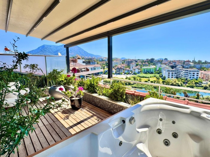 Großzügiges, möbliertes Penthouse mit 4+1 Schlafzimmern, Meer- und Bergblick, 250 Meter vom Meer entfernt in Alanya, Tosmur.