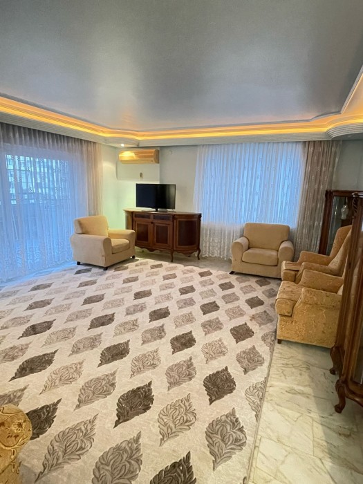 Eine möblierte 2+1-Wohnung mit separater Küche in einem Wohngebäude steht zum Verkauf. Der Komplex liegt 400 m vom Mittelmeer entfernt in Alanya, im Bezirk Mahmutlar.