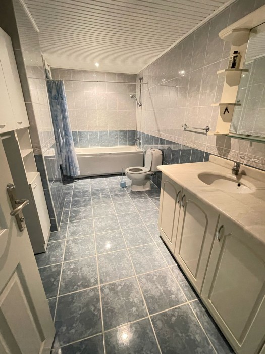 Das 2+1-Apartment (130 m²) befindet sich im 3. Obergeschoss und umfasst: einen Flur, ein Wohnzimmer, eine separate Küche, 2 Schlafzimmer, 2 Badezimmer und 2 Balkone mit Blick auf den Pool, von denen einer verglast ist.