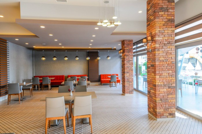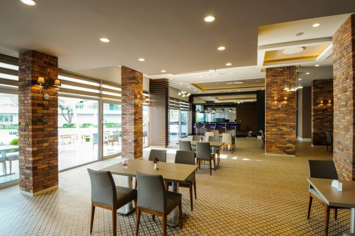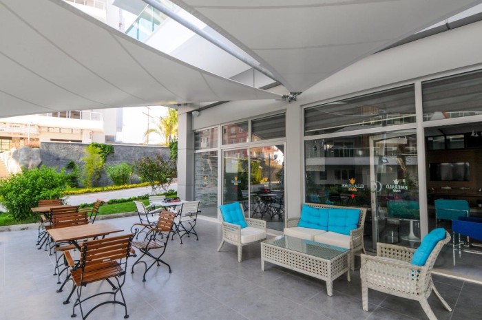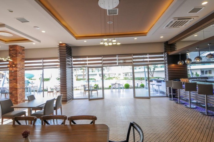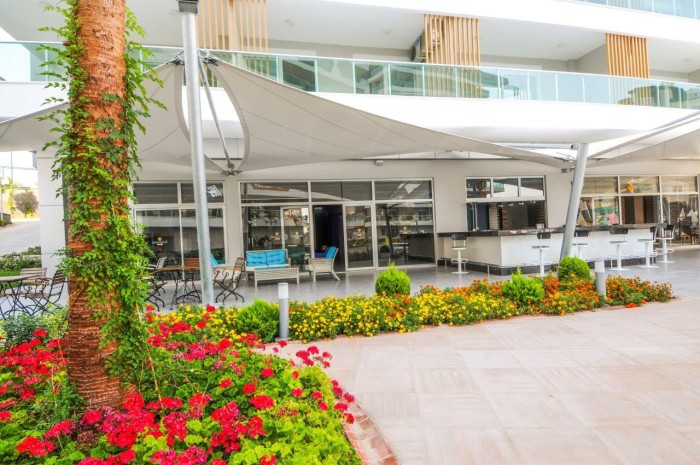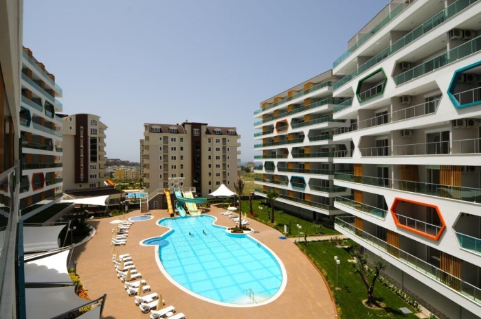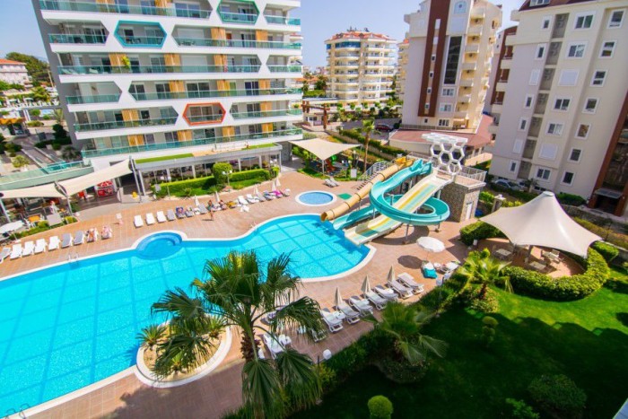 Расстояние от комплекса до моря составляет всего 750 м, а до центра Алании можно добраться за 20 минут на автомобиле или автобусе.