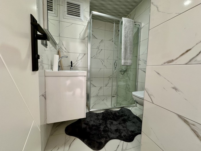 Квартира 1+1 (50 м2) расположена на 3 этаже и имеет следующую планировку: прихожую, гостиную, совмещённую с кухней, спальню, санузел и балкон.