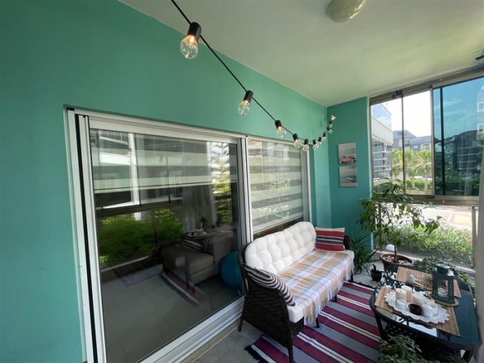 Квартира 2+1 (120 м2) расположена на 1 высоком этаже и имеет планировку: гостиная, совмещённая с кухней, 2 спальни, 2 санузла и 2 балкона.