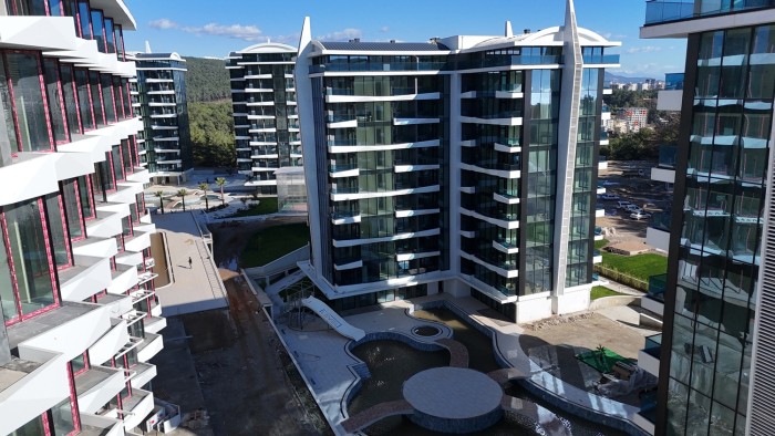 Dieser exklusive Komplex liegt 900 Meter vom Strand von Incekum entfernt auf einem weitläufigen , 52.000 m² großen Grundstück. Er besteht aus einem 5-Sterne-Hotel und sieben Wohnblöcken mit Apartments unterschiedlicher Grundrisse:
