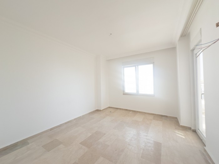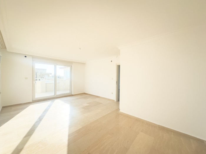 Layout: living room combined with kitchen, 3 bedrooms, 2 bathrooms, 1 balcony and a large terrace with views of the mountains and partly the sea.