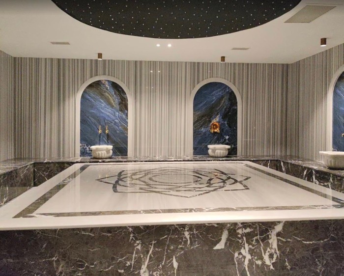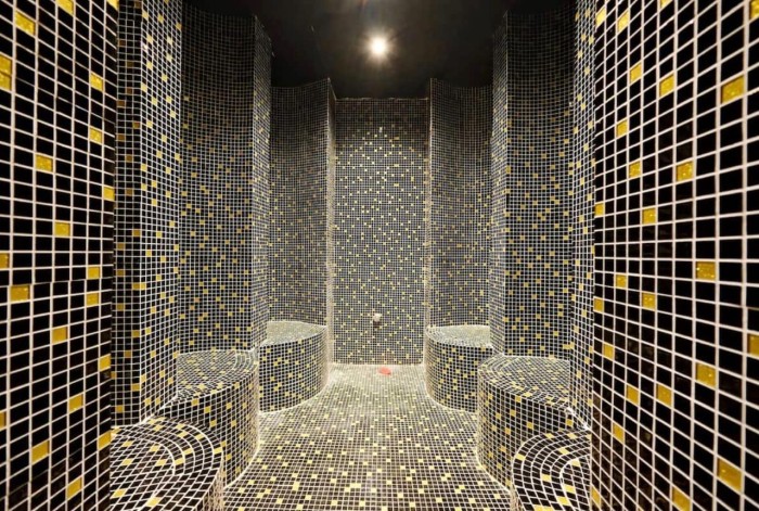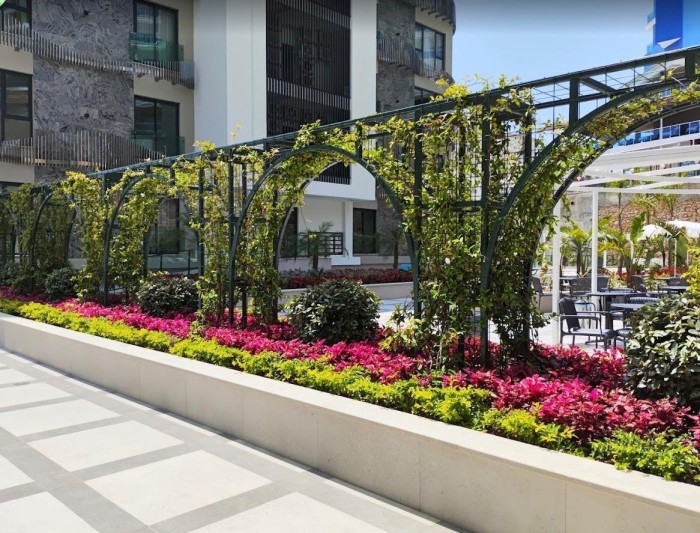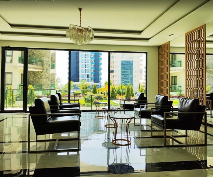 The residential complex was built just 100 meters from the sea . Within walking distance are numerous grocery stores, supermarkets, hardware stores, pharmacies, restaurants, and cafes.