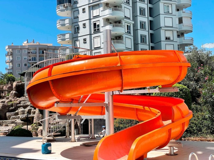 The territory has: an outdoor swimming pool with a slide, a sauna, a hammam, a fitness room, a tennis court, a basketball court, a barbecue, a gazebo, a generator, outdoor parking, an elevator, and a concierge.