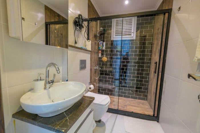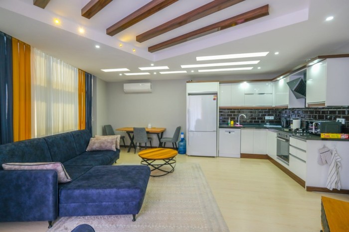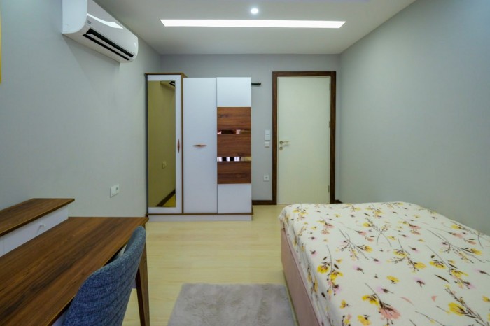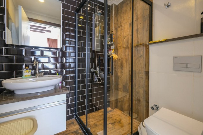 The complex boasts excellent amenities, including a reception desk, relaxation and meeting areas, a restaurant, an indoor and outdoor heated pool, a sauna, a steam room, a Turkish bath, a jacuzzi, a tennis court, a children's playroom, a billiards room, a fitness center, and a beautiful rooftop infinity pool with stunning panoramic views of the sea, Alanya Castle, and the mountains. In addition, there is two-story covered parking, 24/7 security, CCTV, and a generator.