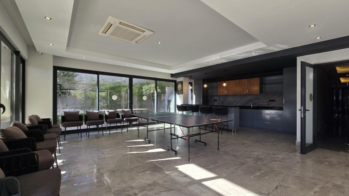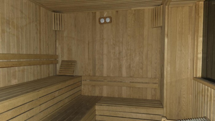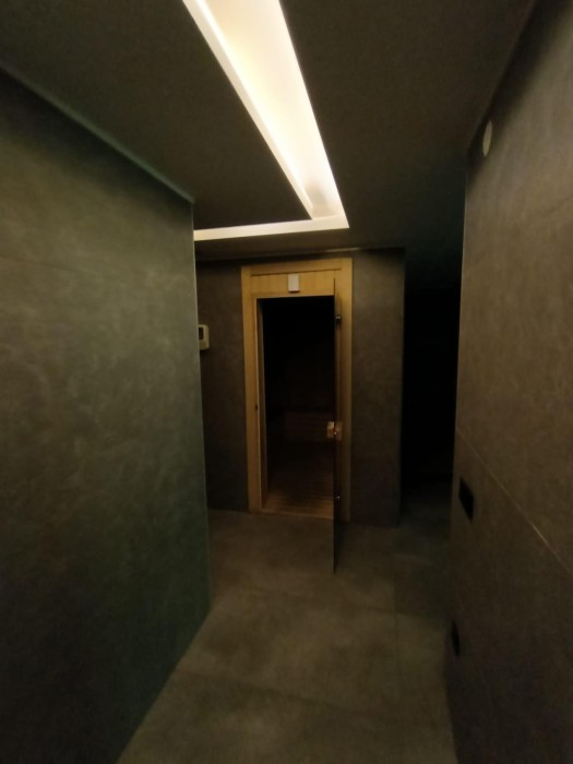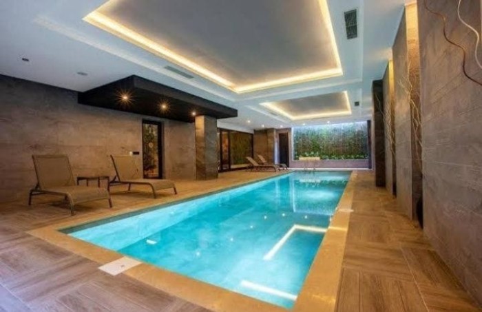The complex's infrastructure includes an outdoor swimming pool, a winter swimming pool, a sauna, a gym, a barbecue area, a relaxation area, and an elevator.
