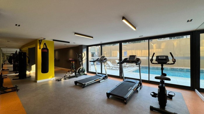 The territory has an outdoor swimming pool, sauna, fitness center, jacuzzi, generator, children's room, elevator, and concierge.