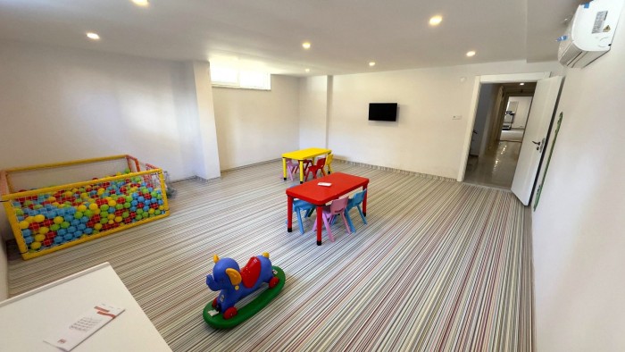 All city amenities, including cafes, shops, and supermarkets, are within walking distance. A bus stop is nearby, providing quick access to Alanya's city center. The complex is located 635 meters from the Mediterranean Sea.