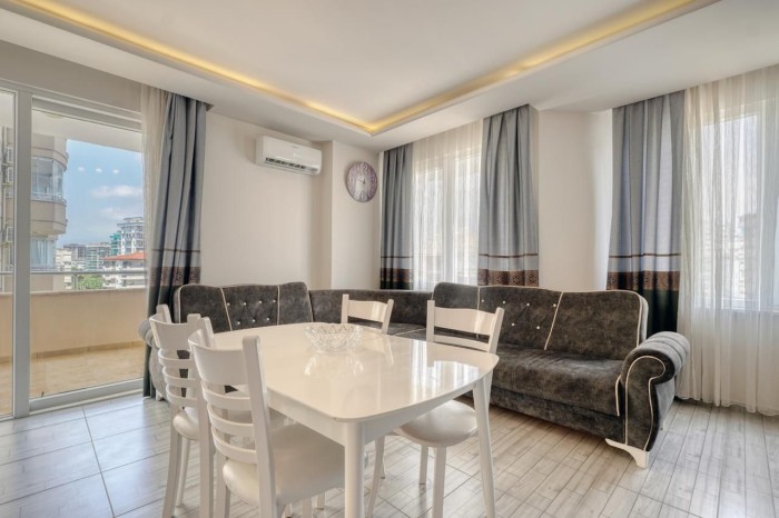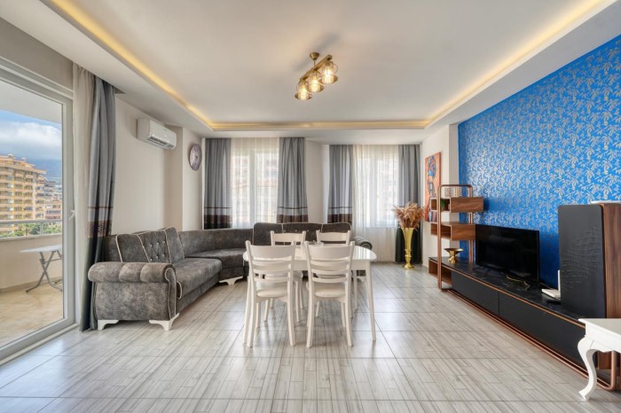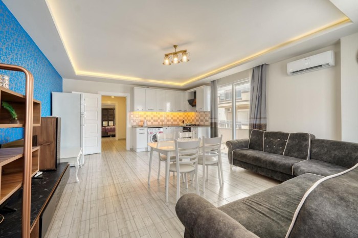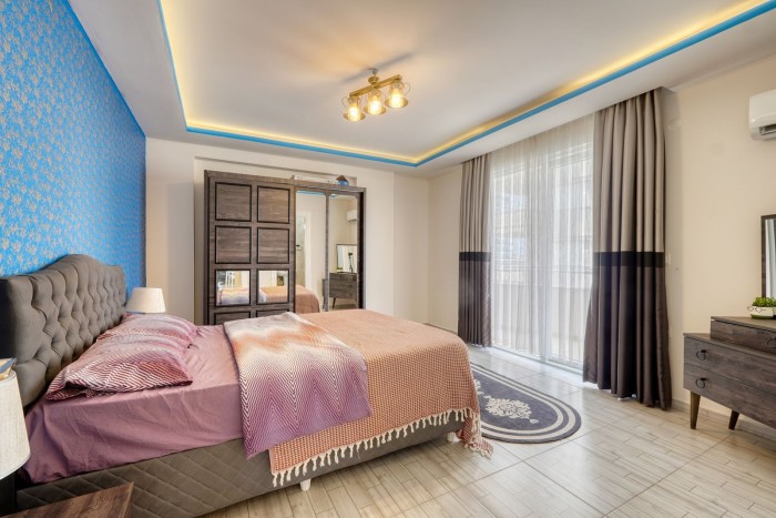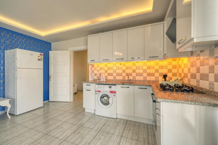 For sale is a large furnished 1+1 apartment in a 2010 building , just 100 meters from the sea in the popular area of Alanya - Mahmutlar.