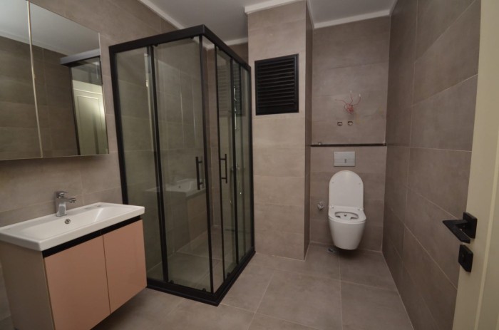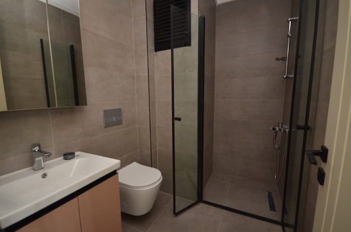 The apartment is sold fully finished, with a kitchen set and equipped bathrooms.