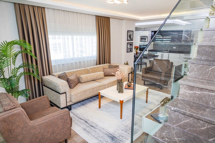 - Furnished 2+1 penthouse with sea view on the first coastline in Alanya, Kestel No. 10678