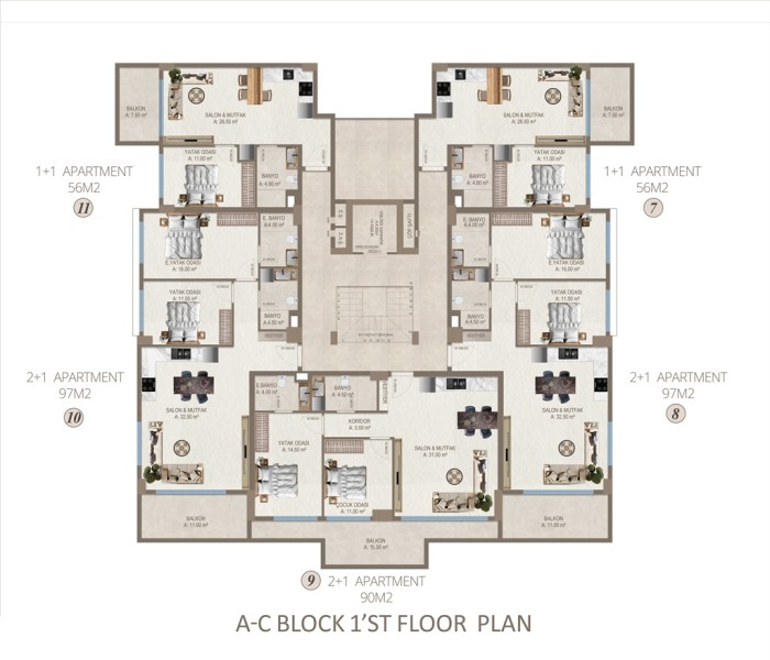 - 3+1 apartments 164 m2 - 190 m2 penthouses