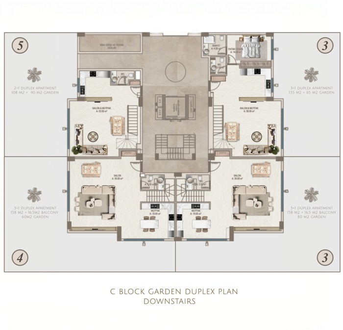 - 3+1 apartments 133+65 m2 - 174.5+80 m2 with private garden