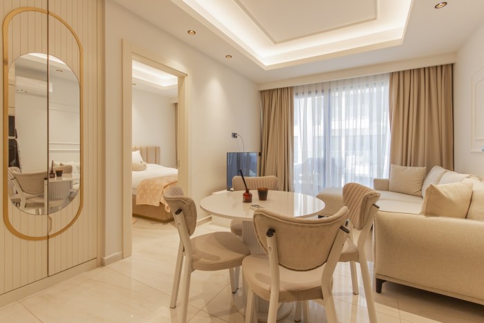 A 1+1 apartment in a unique premium complex on the first coastline in the very center of Mahmutlar, Alanya is for sale.