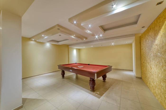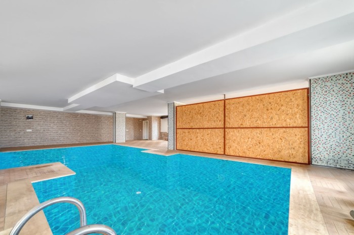 On the complex's grounds, you'll find everything you need for comfortable living and relaxation: an outdoor pool, an indoor heated pool, a sauna, a fitness center, table tennis, billiards, and indoor and outdoor parking.