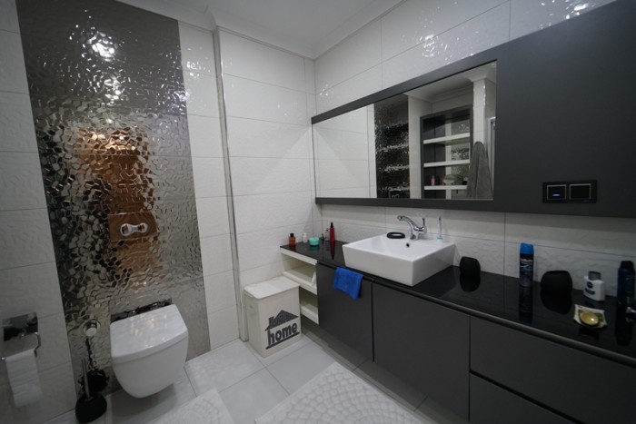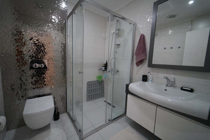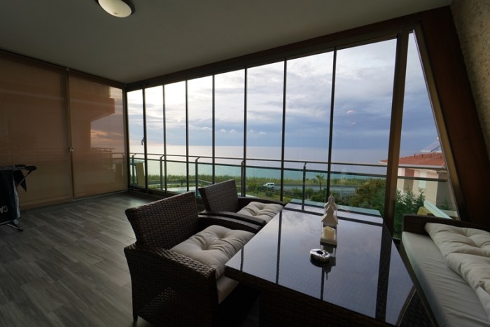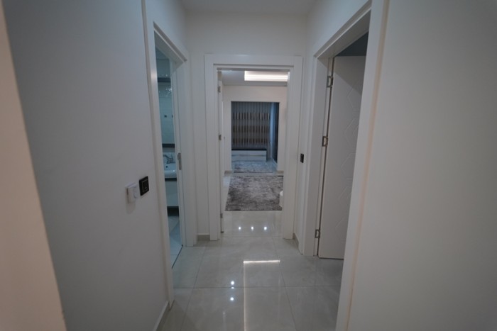 Квартира располагается на 2-м этаже. Площадь 125 м2, планировка 2+1: кухня, совмещенная с гостиной, 2 спальни, 2 санузла, 2 просторный балкон. С балкона открываются роскошные панорамные виды на море и горы.